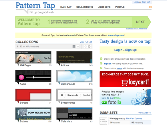 PatternTap, for example, offers an incredibly detailed showcase of specific design patterns that ultimately exist because they are useful. The site has taken the community by storm, and quite rightly so: for the definitive resource for discovering specific elements, PatternTap is the place to go.