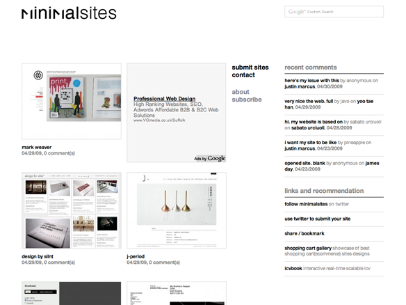 The Queen of web galleries in our opinion is MiminalSites: a site dedicated to minimal design only, in an arena of blogs that deal with primarily with very fussy and overcomplicated design. In fact MiminalSites inspired the creation of this blog, but with a larger remit, and you’ll find that many sites in the Minimal category here have been attributed to MinimalSites.