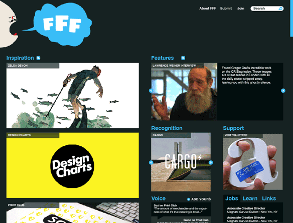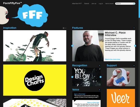 FormFiftyFive launched 31st January 2007 and was originally a way for Jack Daly and myself to keep track of all the amazing work we kept sending each other via email. We wanted a way to archive all the work and links so that it would be easier to find when needed. Bit by bit our audience grew and we had a few people ask if they could join in. We tried really hard to post at least one decent link a day and it was getting more and more difficult, so it seemed to make sense to spread the wait a bit.